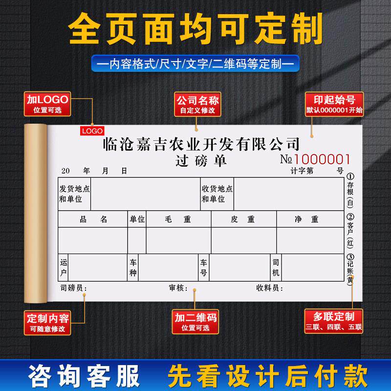 【冷库专用过磅单】冷冻食品销售出库结算单生鲜果蔬称重磅单