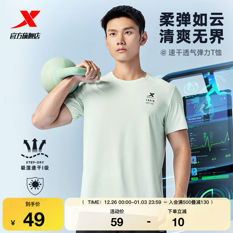 特步短袖T恤男2025年新款夏季速干衣健身训练跑步半袖运动上衣