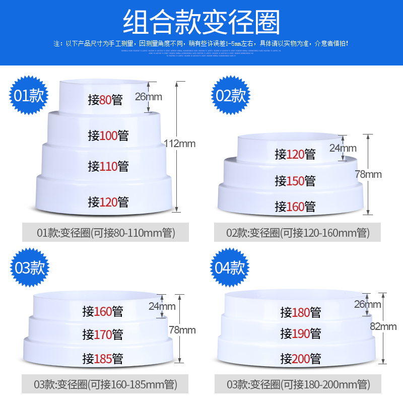 抽油烟机排烟管变径管大转小转换接头厨房烟道变径圈排风管变径器
