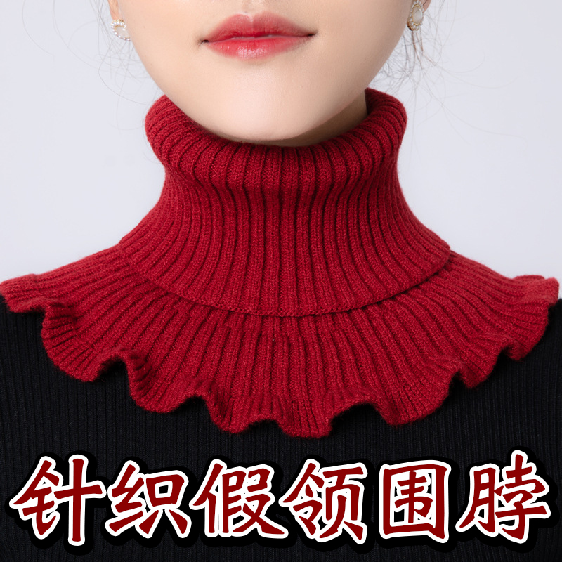 假领子女士百搭围脖冬季保暖假领套毛衣高领针织毛线脖套御寒红色