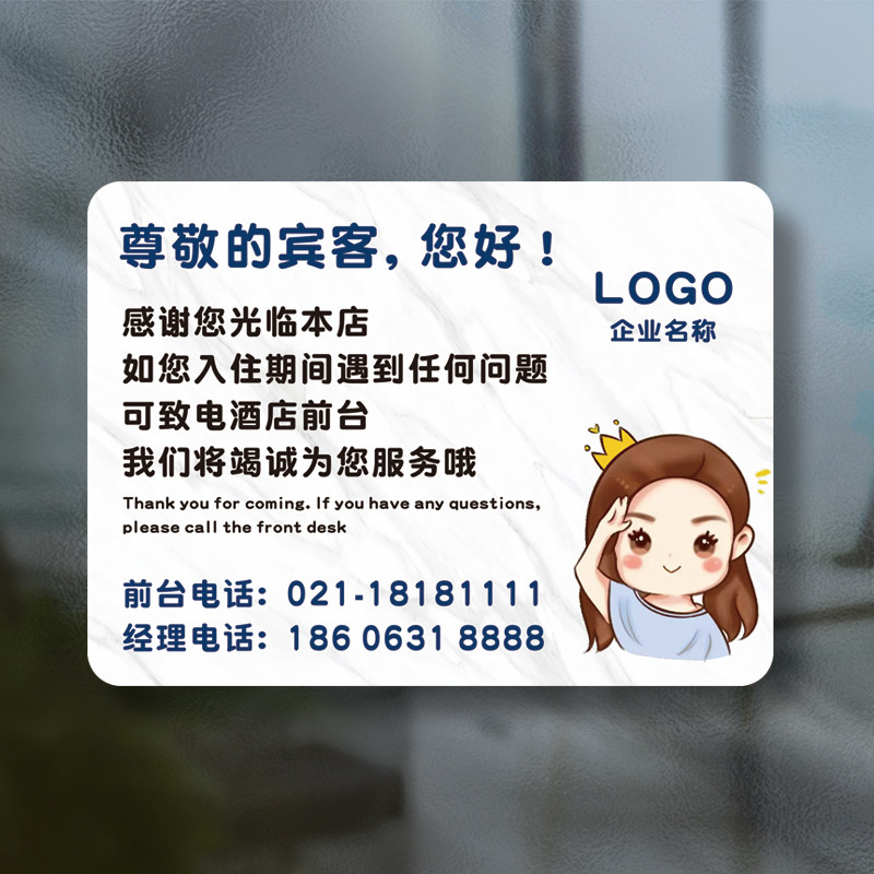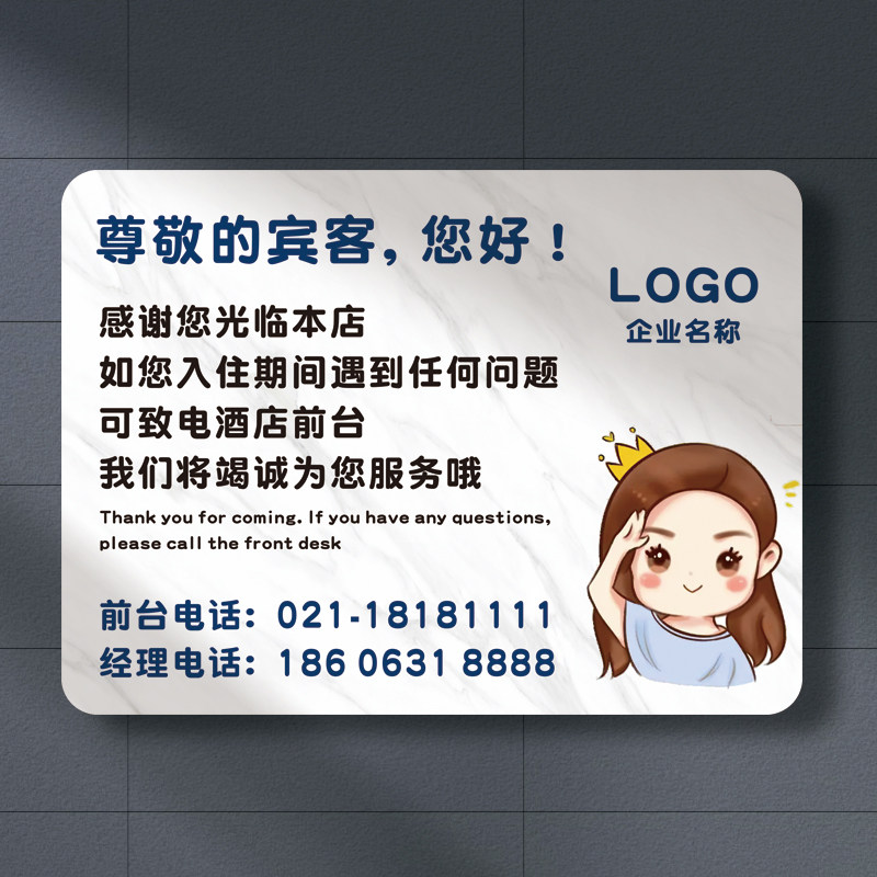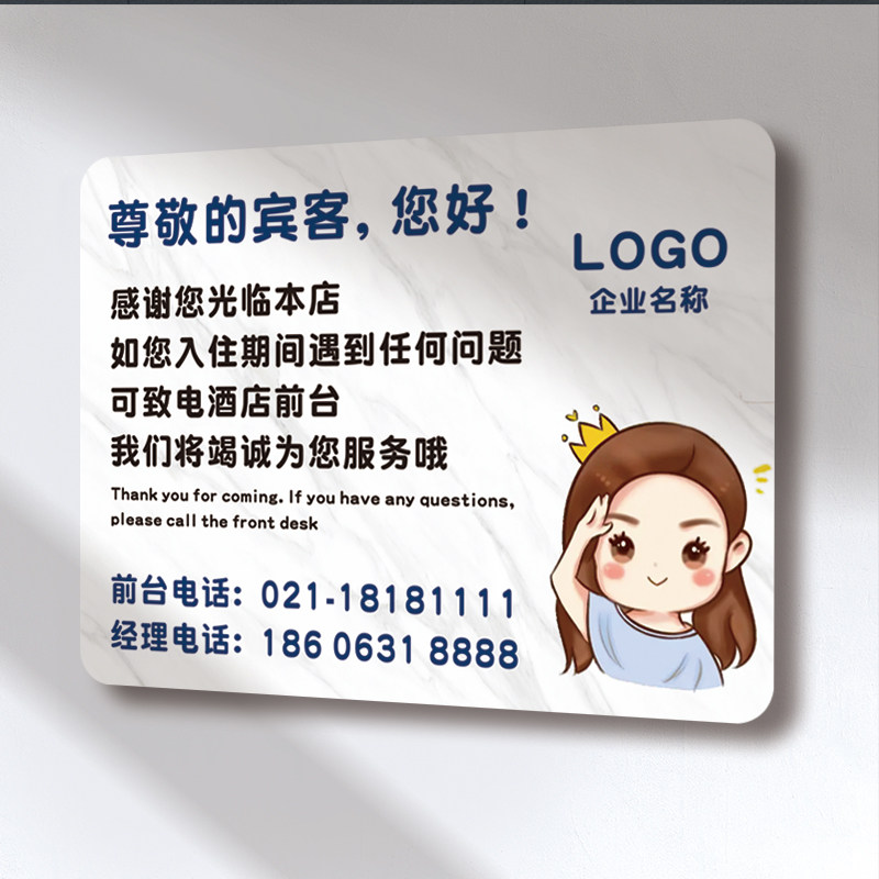 定制酒店宾馆旅店民宿客房间入住前台服务电话亚克力提示标识标牌