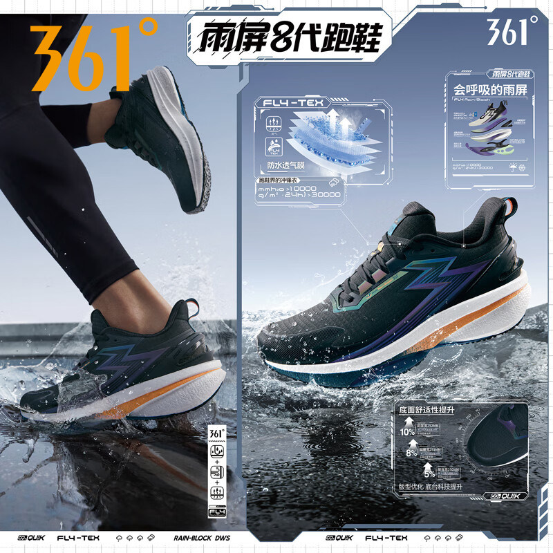 361雨屏8运动鞋男款秋季防泼水跑步鞋轻便减震防滑跑鞋572442253H