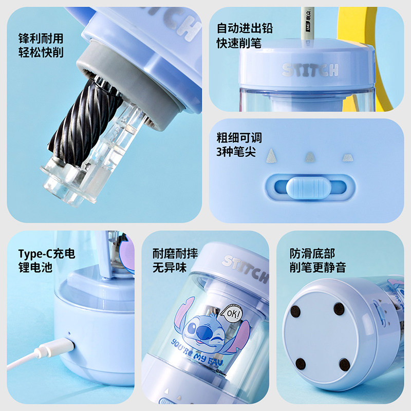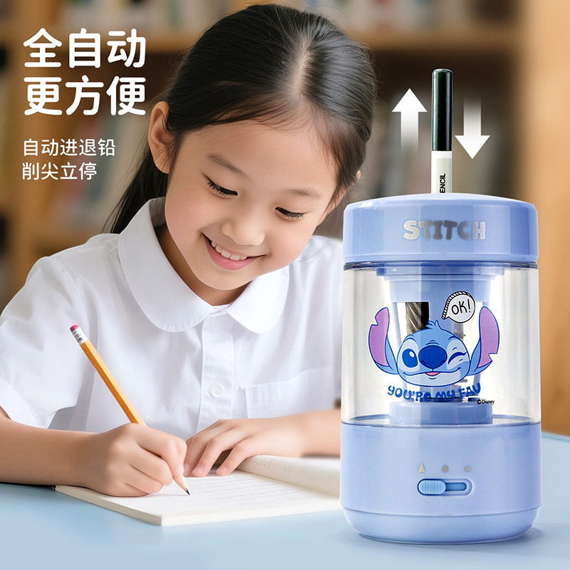 迪士尼学生专用电动削笔机儿童大口径全自动削笔器男生自动进铅铅笔刀女孩款卷笔刀冰雪奇缘转笔刀卡通铅笔刨