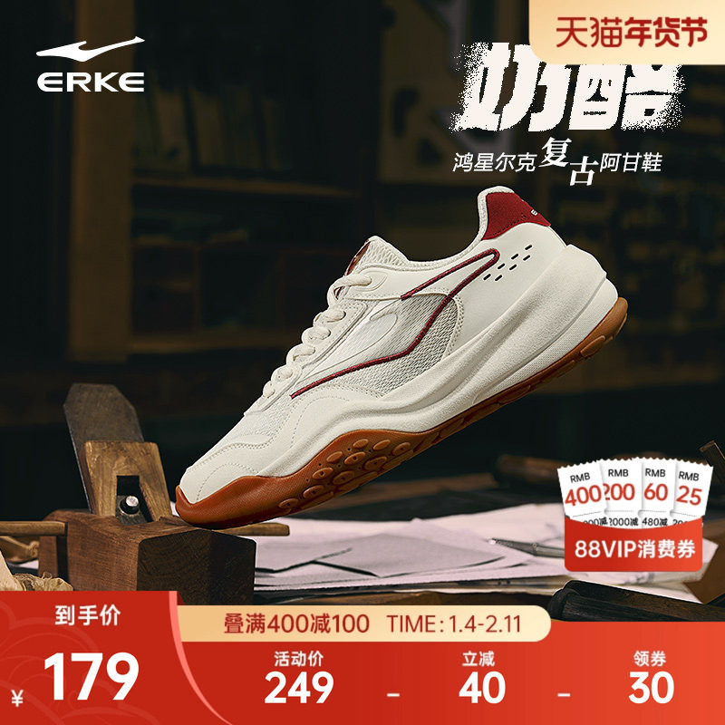 鸿星尔克秋冬新款鞋子男鞋百搭老爹鞋复古风潮流厚底休闲阿甘鞋