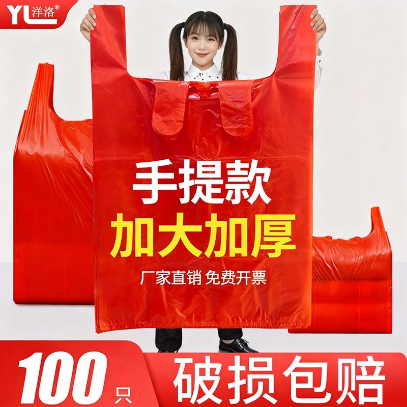 大号背心袋加厚红色塑料袋子收纳袋服装礼品袋打包袋搬家手提袋子