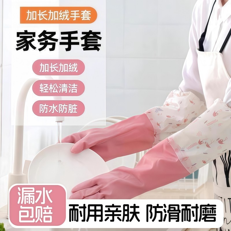 洗碗手套加绒加厚保暖款男女厨房耐用橡胶乳胶皮洗衣加长手套家务