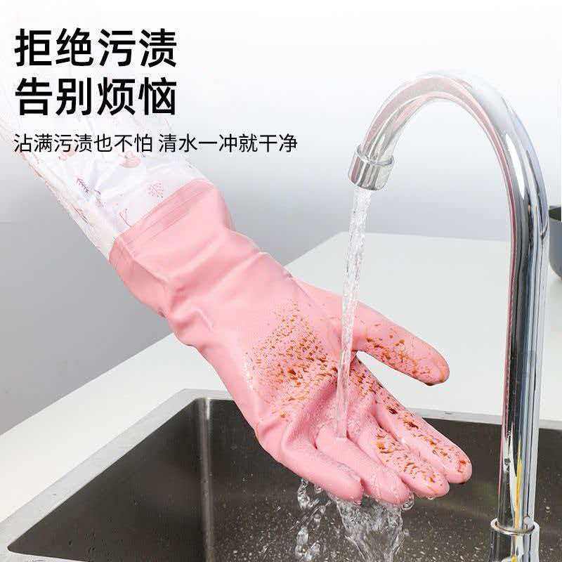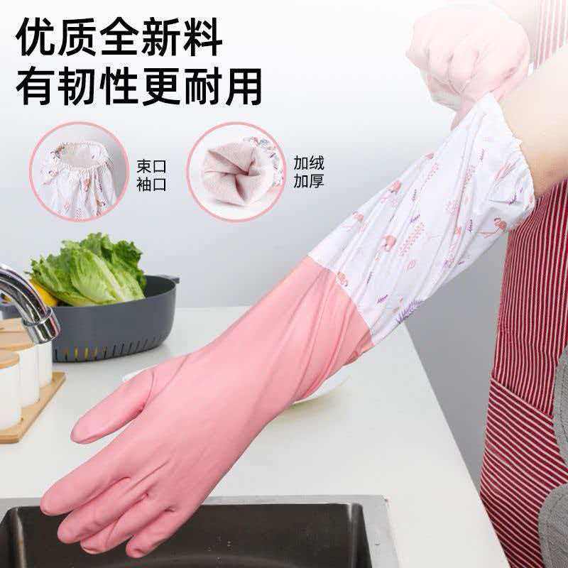 洗碗手套冬季女厨房加厚长耐用加洗衣服防水保暖家务束口加绒加长