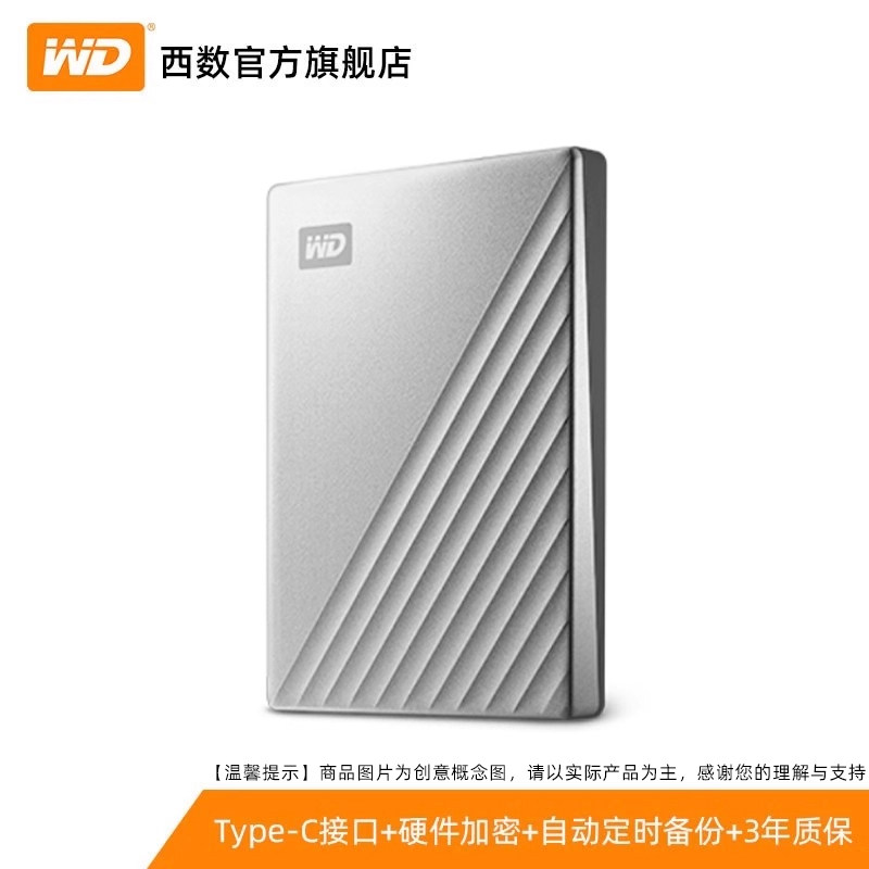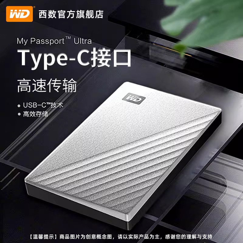 WD西部数据移动硬盘1t外接外置正品1tb电脑机械高速加密TypeC金属