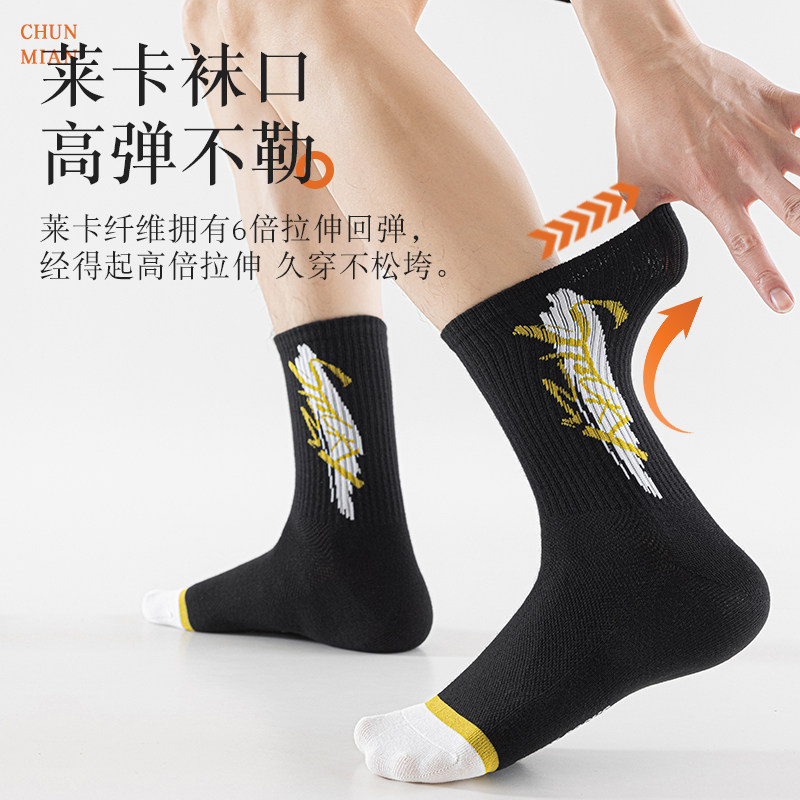 猫人男士袜子男款纯棉防臭中筒袜吸汗透气2025年秋季黑色商务长袜