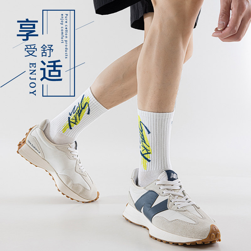 棉伙棉伴纯棉中筒袜抗起球男女纯色透气舒适耐穿日常百搭