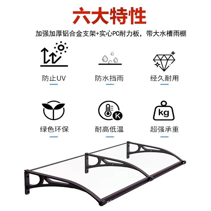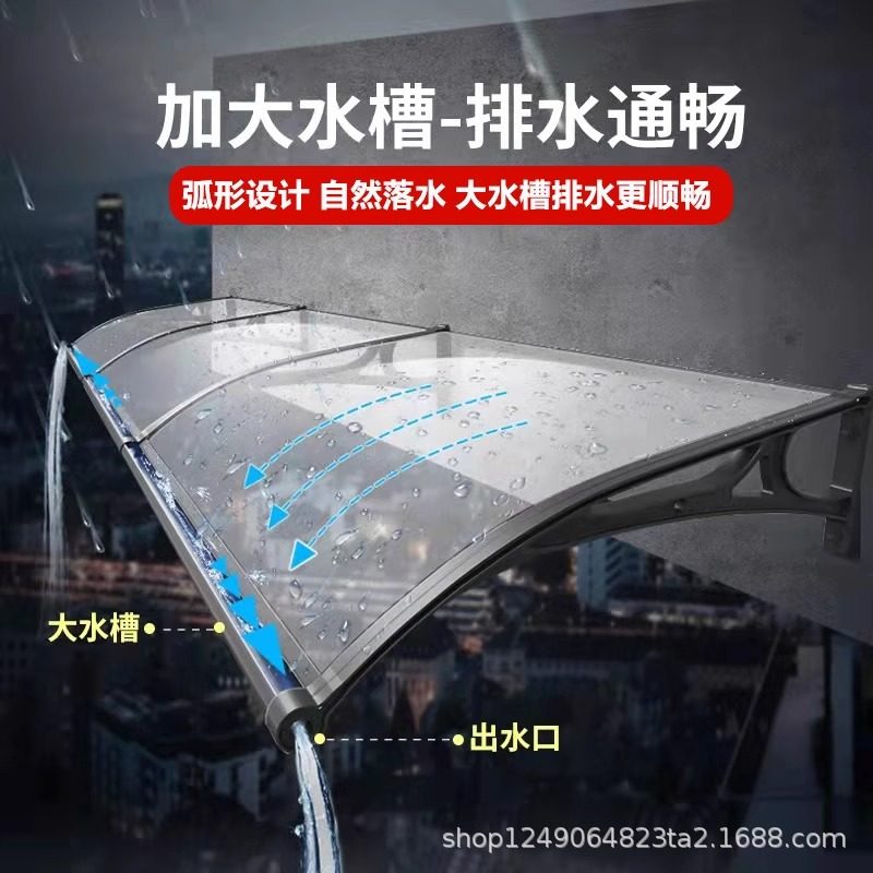铝合金支架大水槽雨棚户外防雨屋檐大门上家用雨篷透明静音遮阳棚