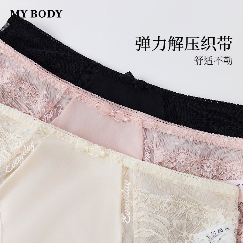 3件199|商场同款MYBODY新款蕾丝内裤舒适轻透包臀纯棉底裆平角裤