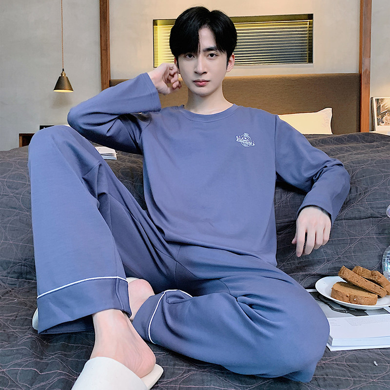 安比斯情侣睡衣舒适纯棉秋季女长袖男女同款休闲家居服套装可出门