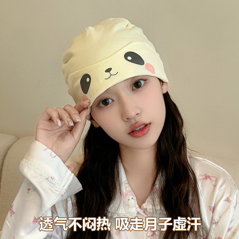 婧麒月子帽秋产后孕妇帽可爱大头围帽子月子发带头巾10月11产妇帽