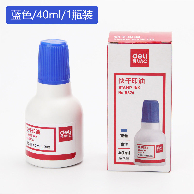 得力印油9874【油性】 印泥用于快干印台 办公专用快干清洗印泥油 红黑蓝银行柜台印台油墨橡皮章法人章印油