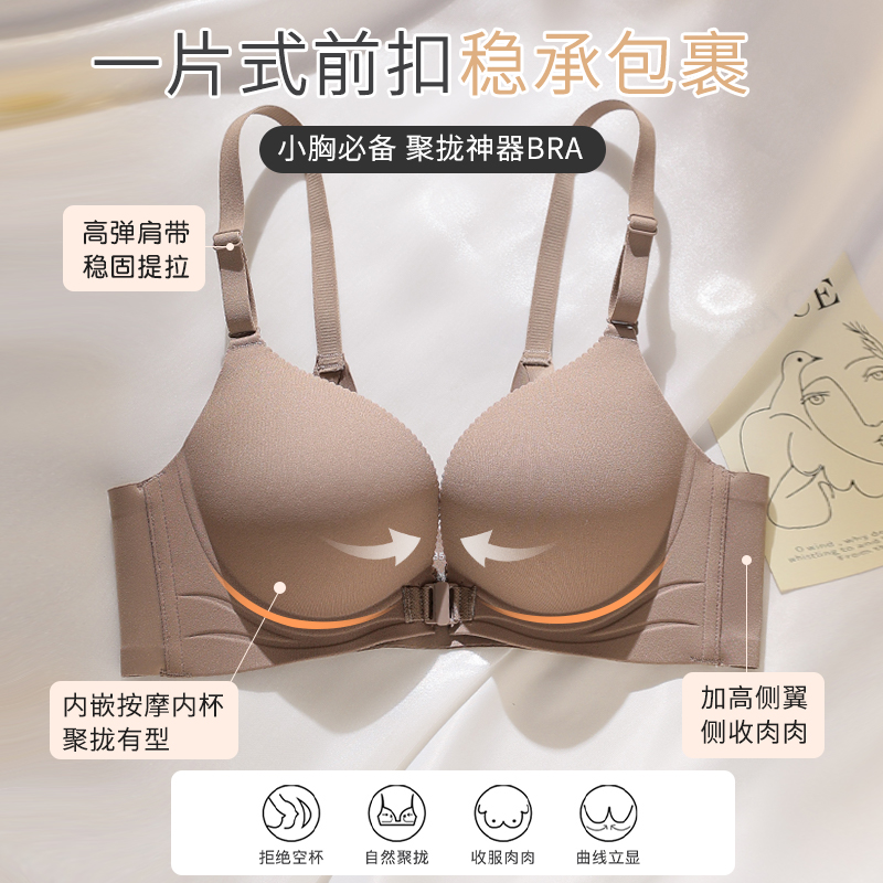无痕内衣女小胸聚拢前扣文胸薄款夏季无钢圈防下垂收副乳性感胸罩