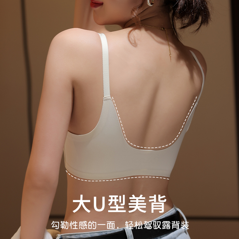无痕美背抹胸内衣女小胸聚拢可外漏细肩带一体固定杯背心式文胸罩