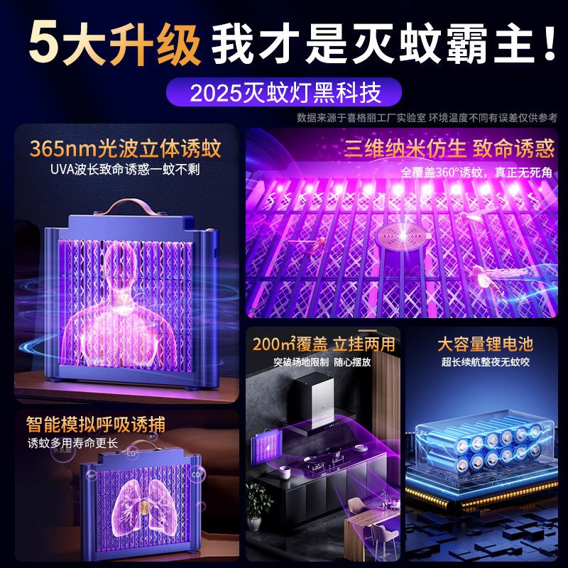 2025新款灭蚊灯家用灭蝇神器驱蚊静音婴儿孕妇餐厅饭店用全自动超声波黑科技物理杀电蚊子克星器户外新型蚊蝇