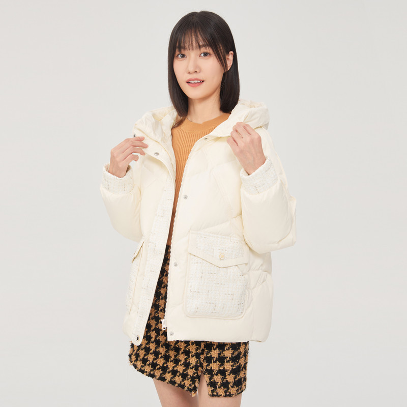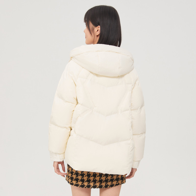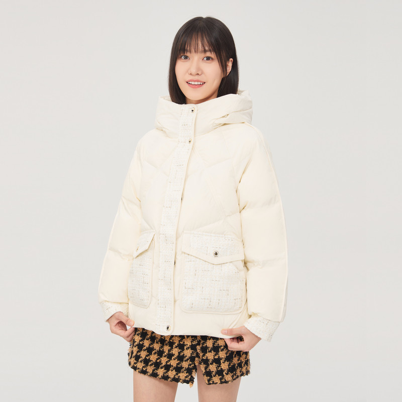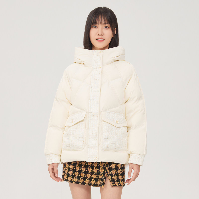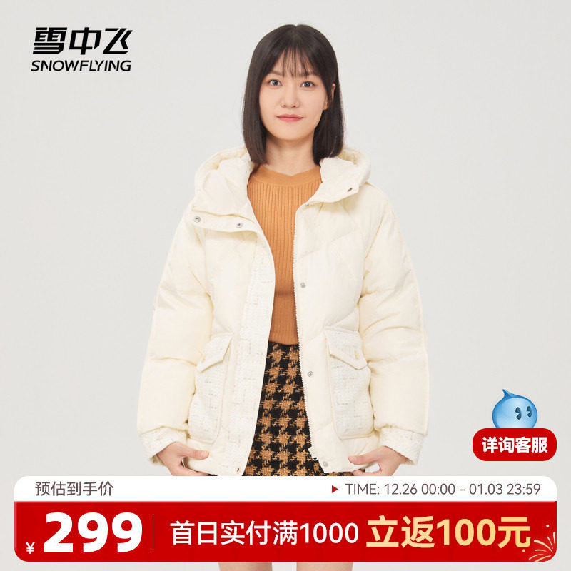 雪中飞2025秋冬新款女士短款连帽羽绒服小香风甜美温柔休闲米色暖