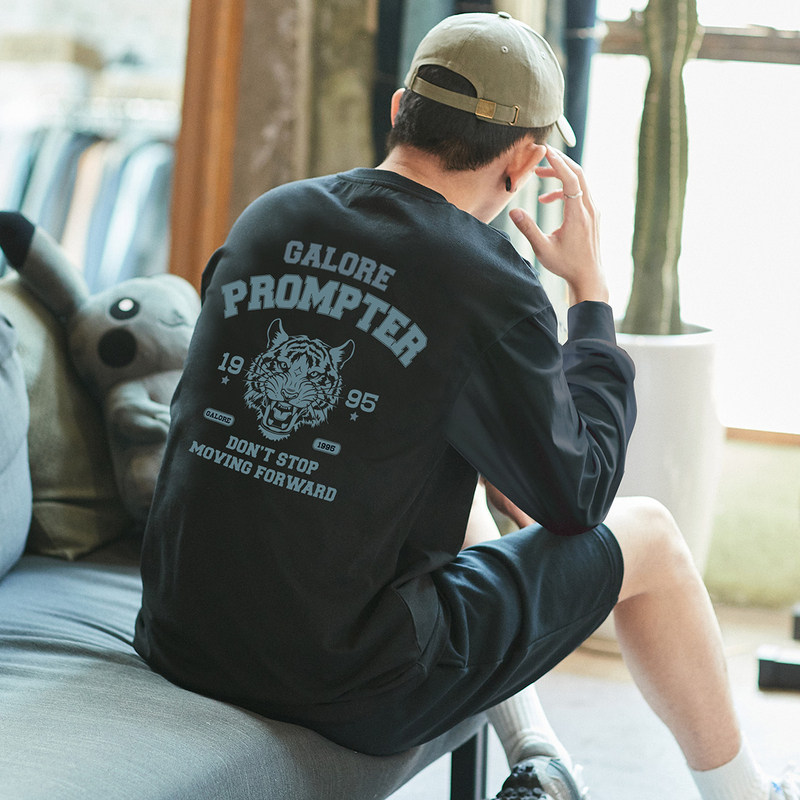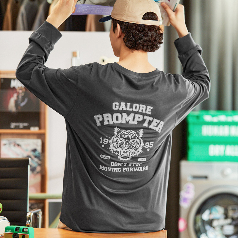 唐狮春秋季黑色长袖T恤男士百搭宽松显瘦上衣男打底衫港风潮内搭4