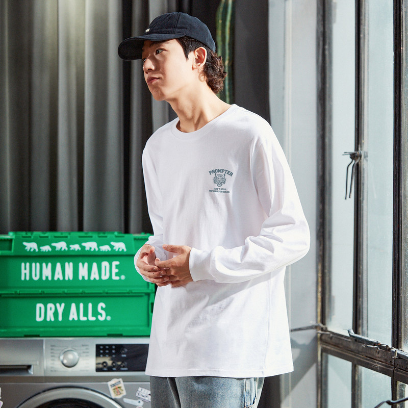 BURNIN*小火苗火焰横排长袖T恤男宽松美式街头加绒保暖打底衫上衣