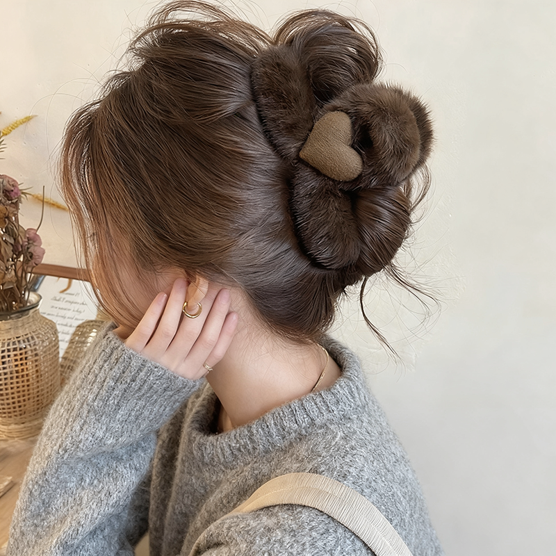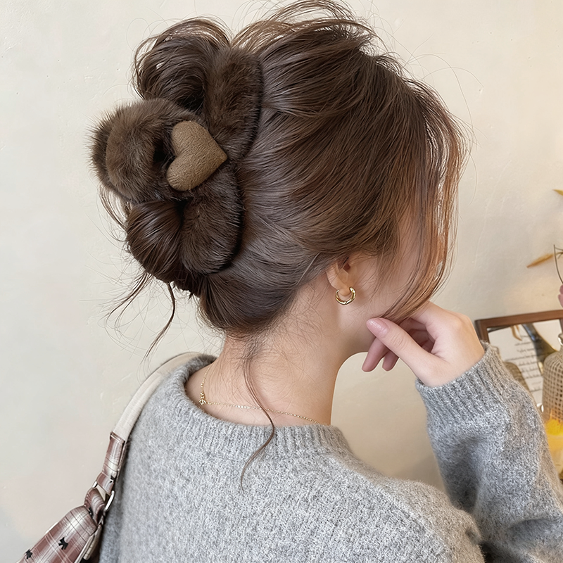 秋冬棕色毛绒爱心抓夹女高级感鲨鱼夹2025新款后脑勺发夹盘发头饰