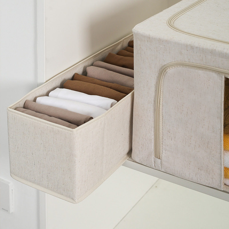 棉麻夹缝内衣收纳盒可折叠袜子内裤抽屉整理储物盒窄缝盒分格分隔