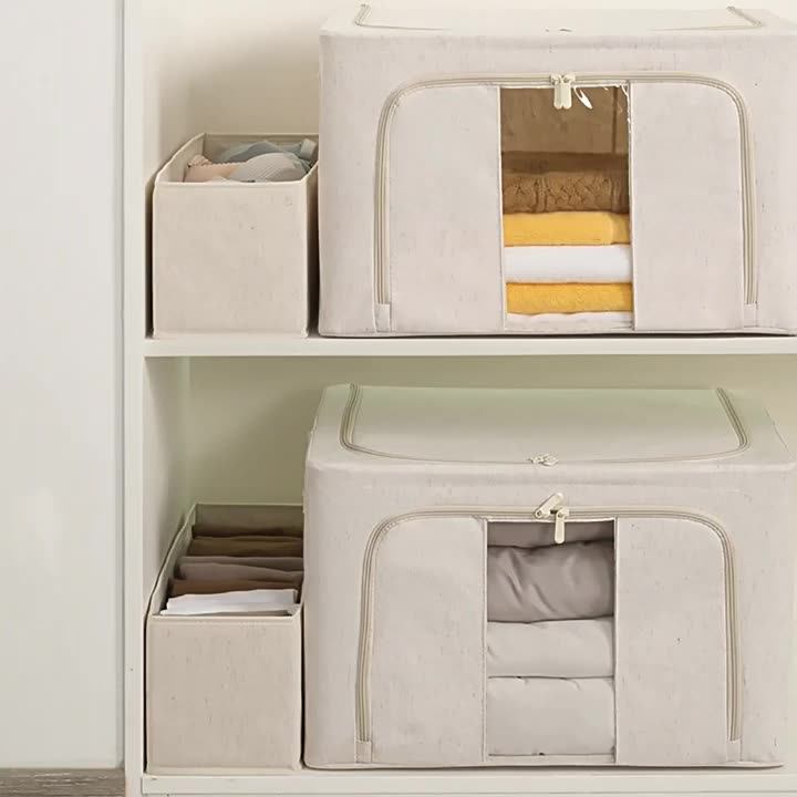 衣柜分层神器衣服收纳箱可水洗家用裤子整理盒筐布艺折叠储物箱