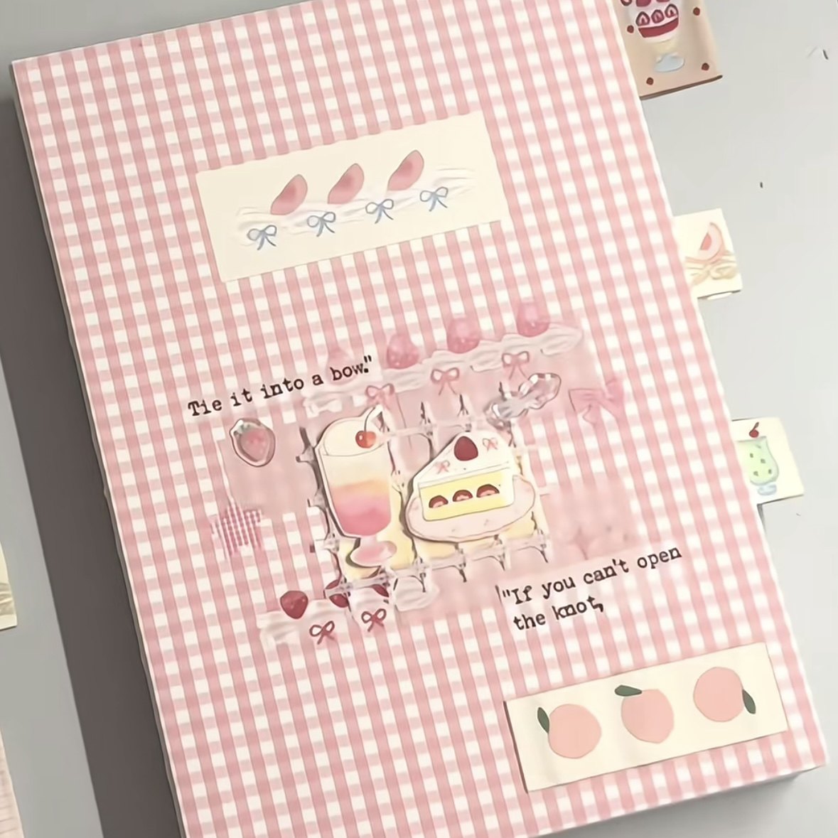 小红书同款粉色格纹A6空白笔记本学生加厚diy便携手账本记事本子
