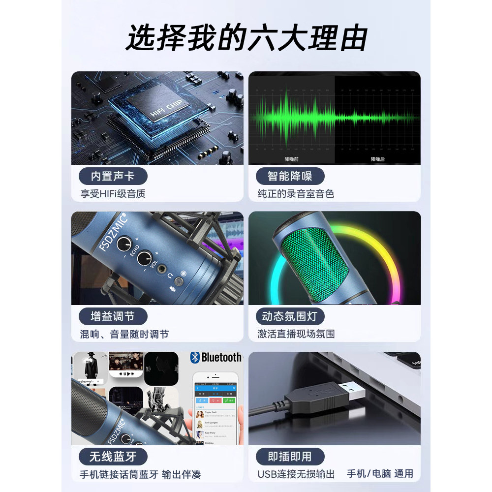 直播麦克风电脑台式游戏专用降噪话筒K歌网课电竞USB录音电容麦