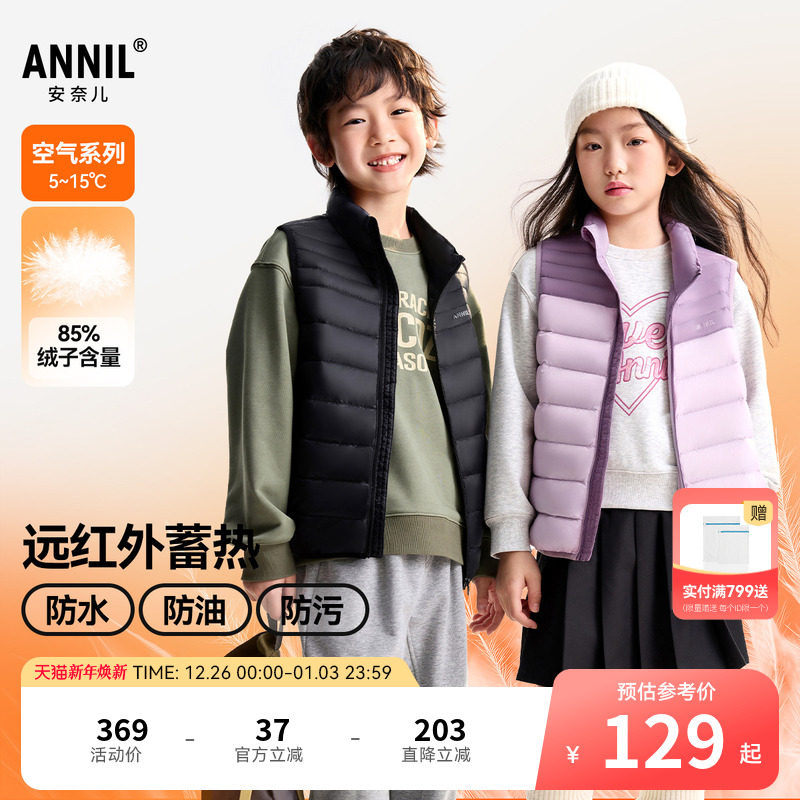 【三防保暖】安奈儿童装男童女童短款羽绒马甲2025冬新款轻薄马夹