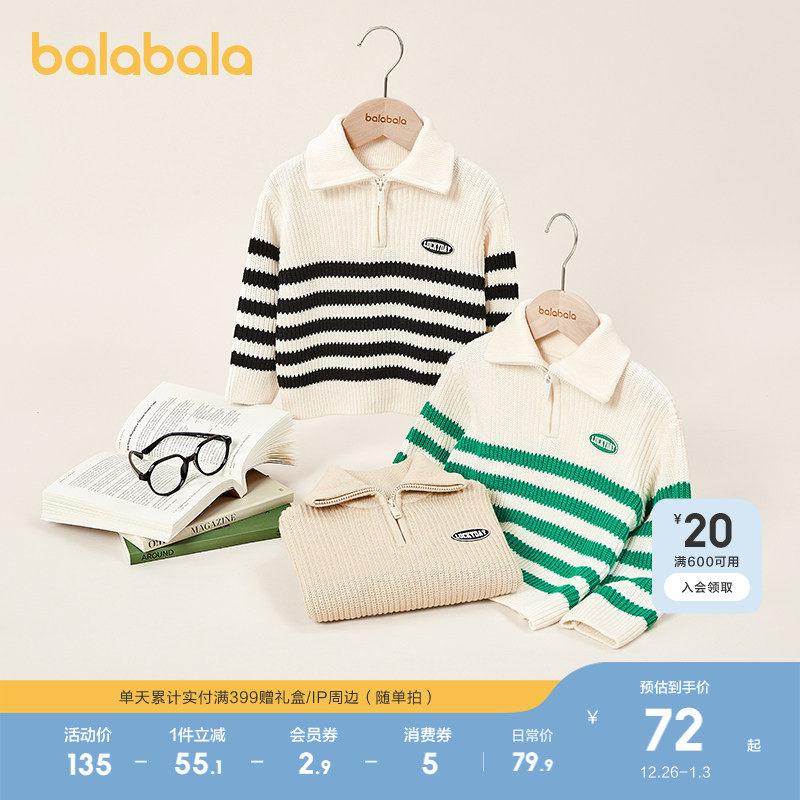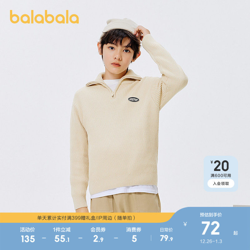 巴拉巴拉儿童毛衣套头秋冬大童男女童针织毛衫高领亲子装休闲上衣