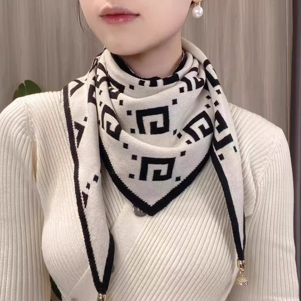 秋冬保暖围脖围巾女2025新款高级感三角巾时尚磁吸扣小方巾丝巾女