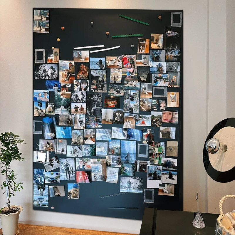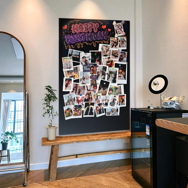 磁吸照片墙冰箱贴展示板磁吸黑板家用磁吸板背景上墙展示板磁性拍立得照片墙黑板墙贴软磁力墙壁装饰白板定制
