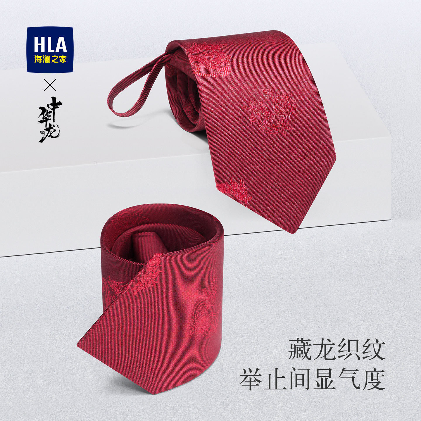 海澜之家领带男士桑蚕丝拉链款免打结红色领饰结婚新郎配饰礼盒装