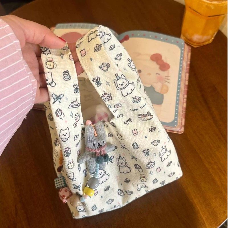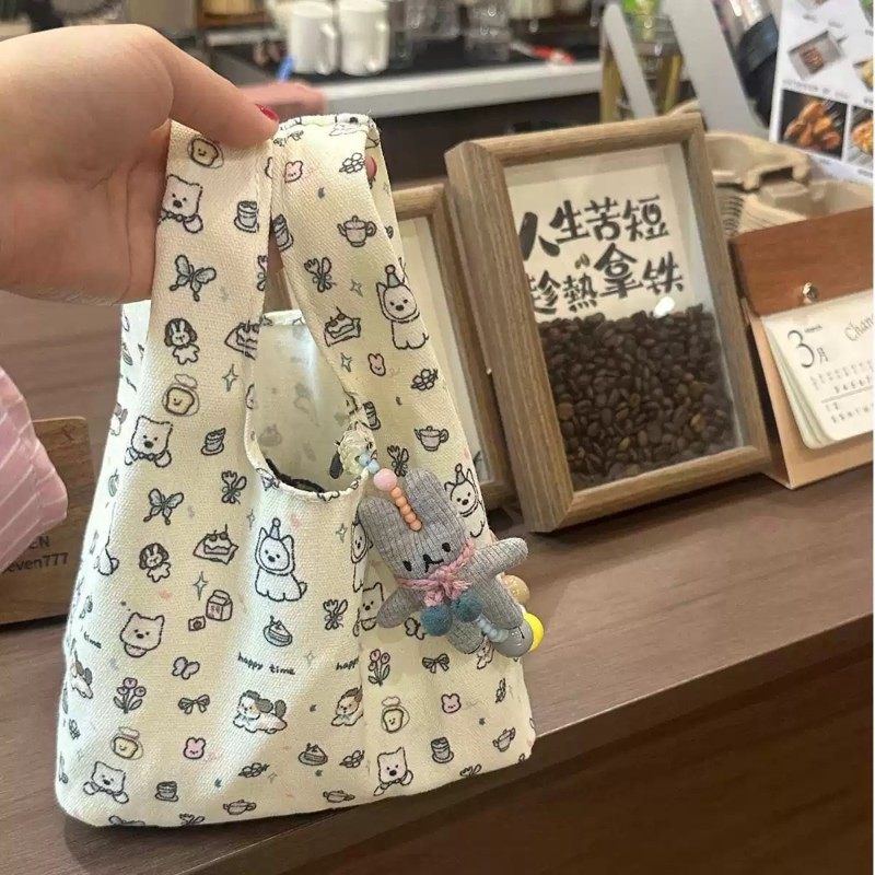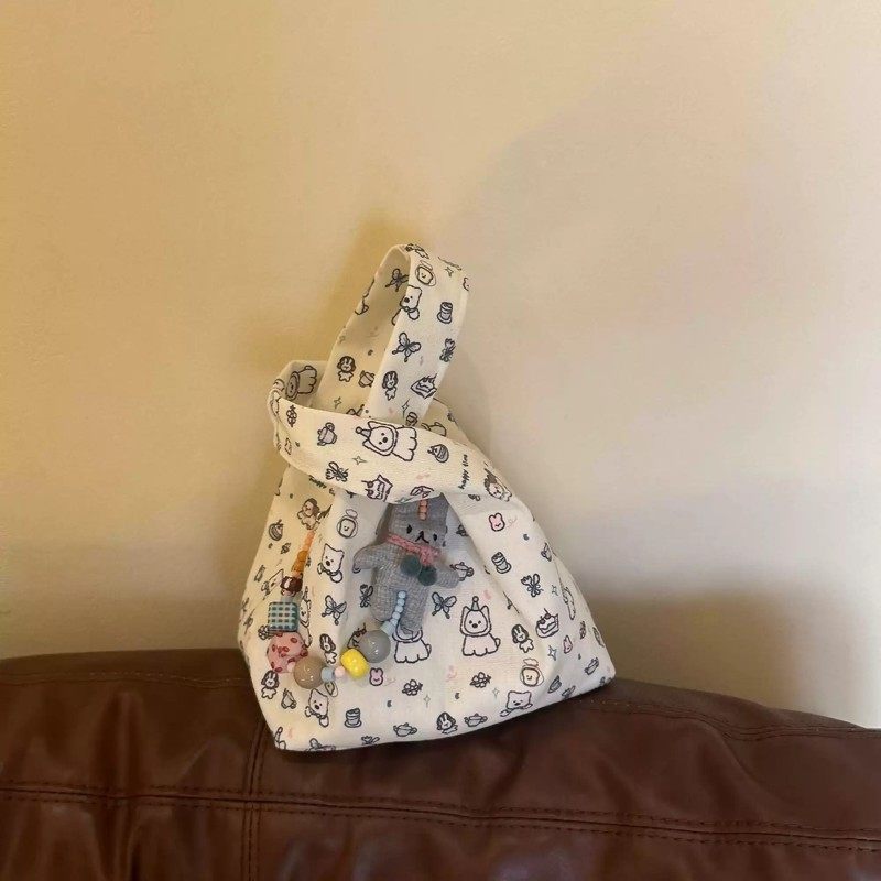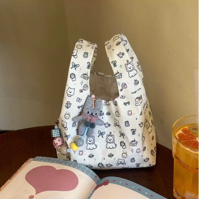 可爱狗狗帆布化妆包外出杂物手提饭盒袋便当包大容量便携手腕包女