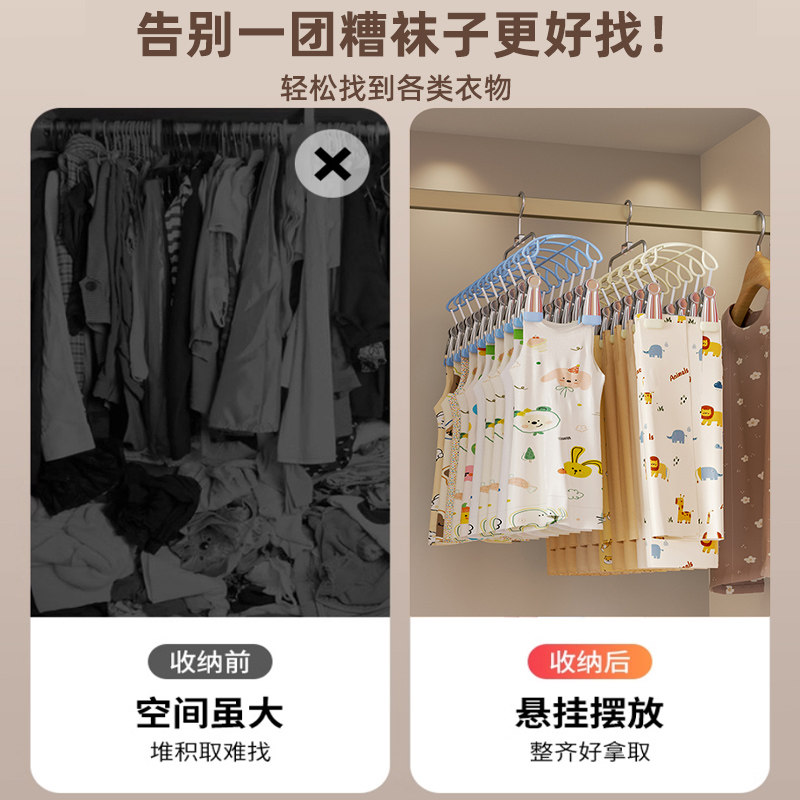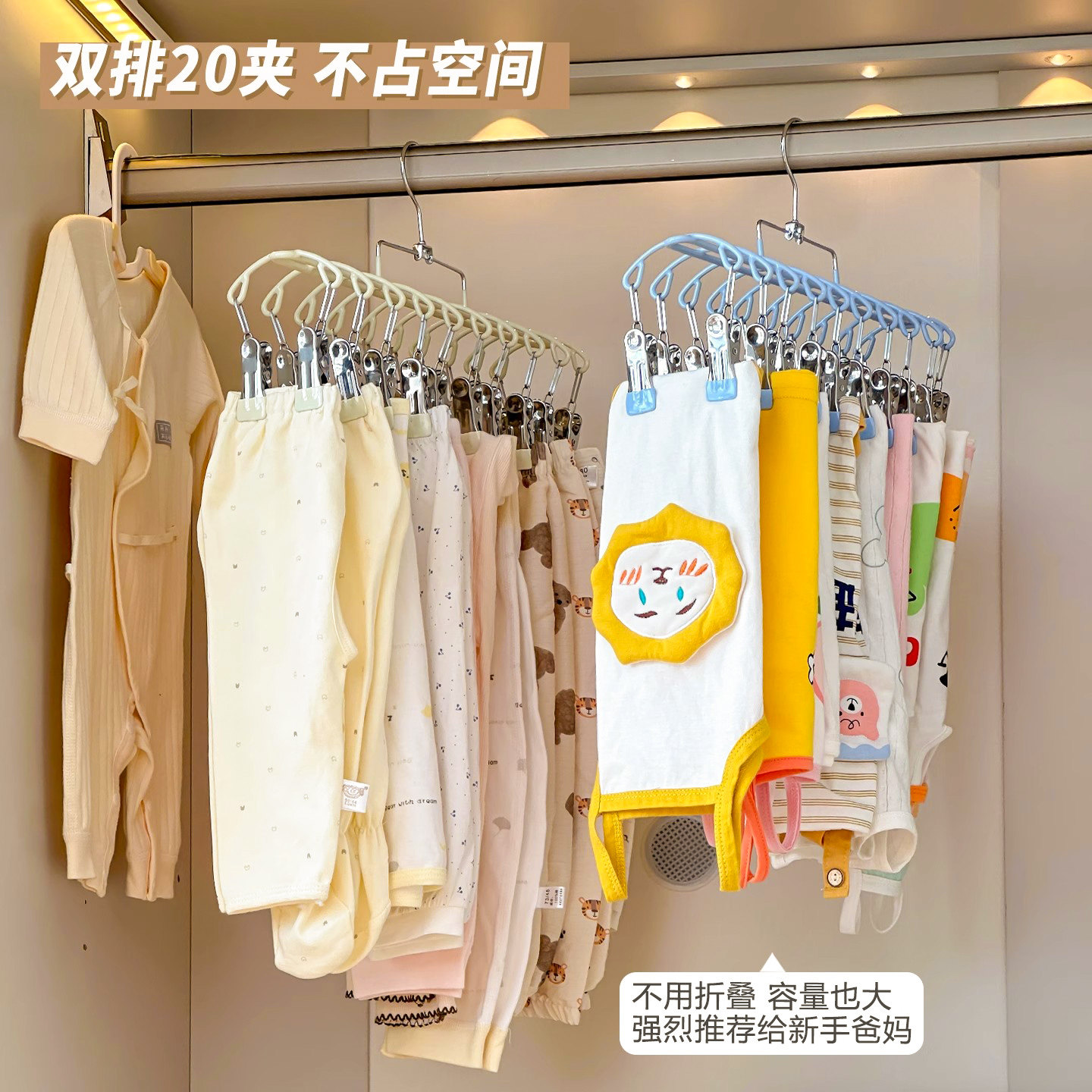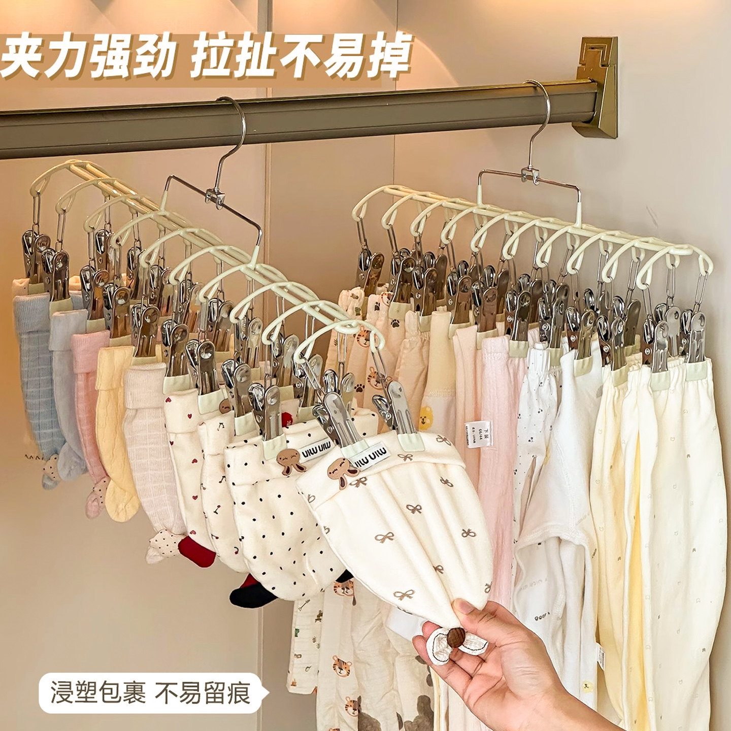婴儿衣柜收纳神器宝宝口水巾袜子挂钩多夹子儿童衣架家用晾晒衣架