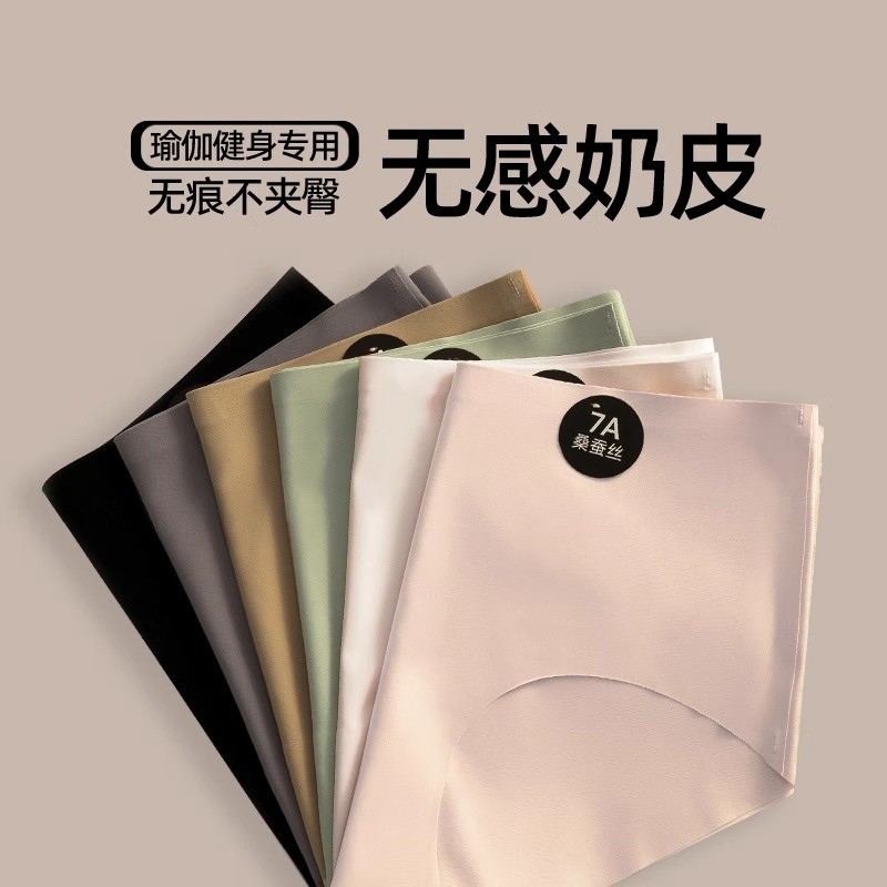 瑜伽内裤无痕女士不夹臀运动健身隐形桑蚕丝抗菌裆短底裤奶皮冰丝