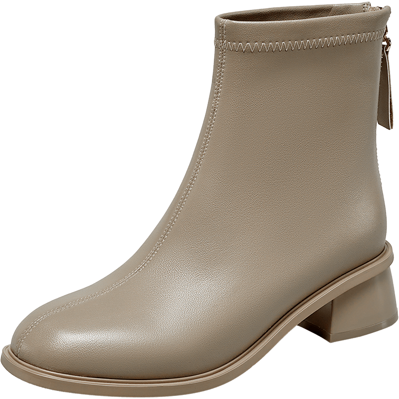 羊皮版~内增高靴子女2025新款爆款中筒粗跟短靴卡其色褶皱堆堆靴