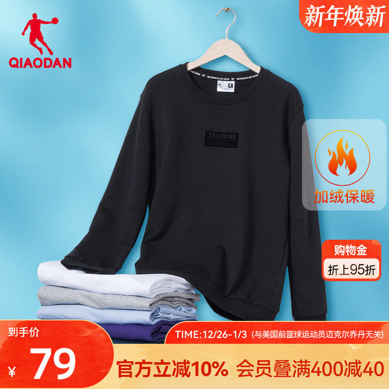 特步加绒卫衣男士秋季新款运动服男装休闲内搭长袖保暖圆领套头衫