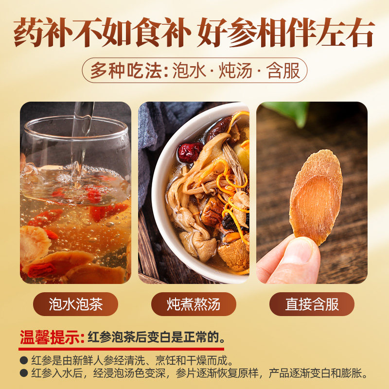 同仁堂长白山红参片干人参片茶高丽参搭中草药材官方旗舰店养血