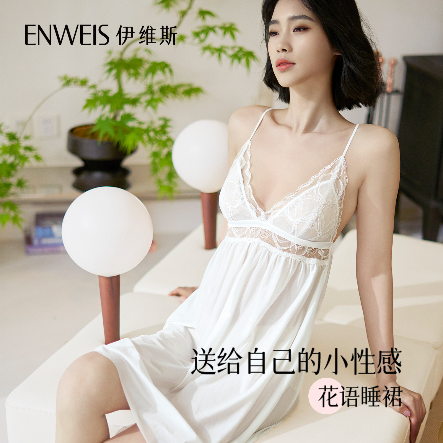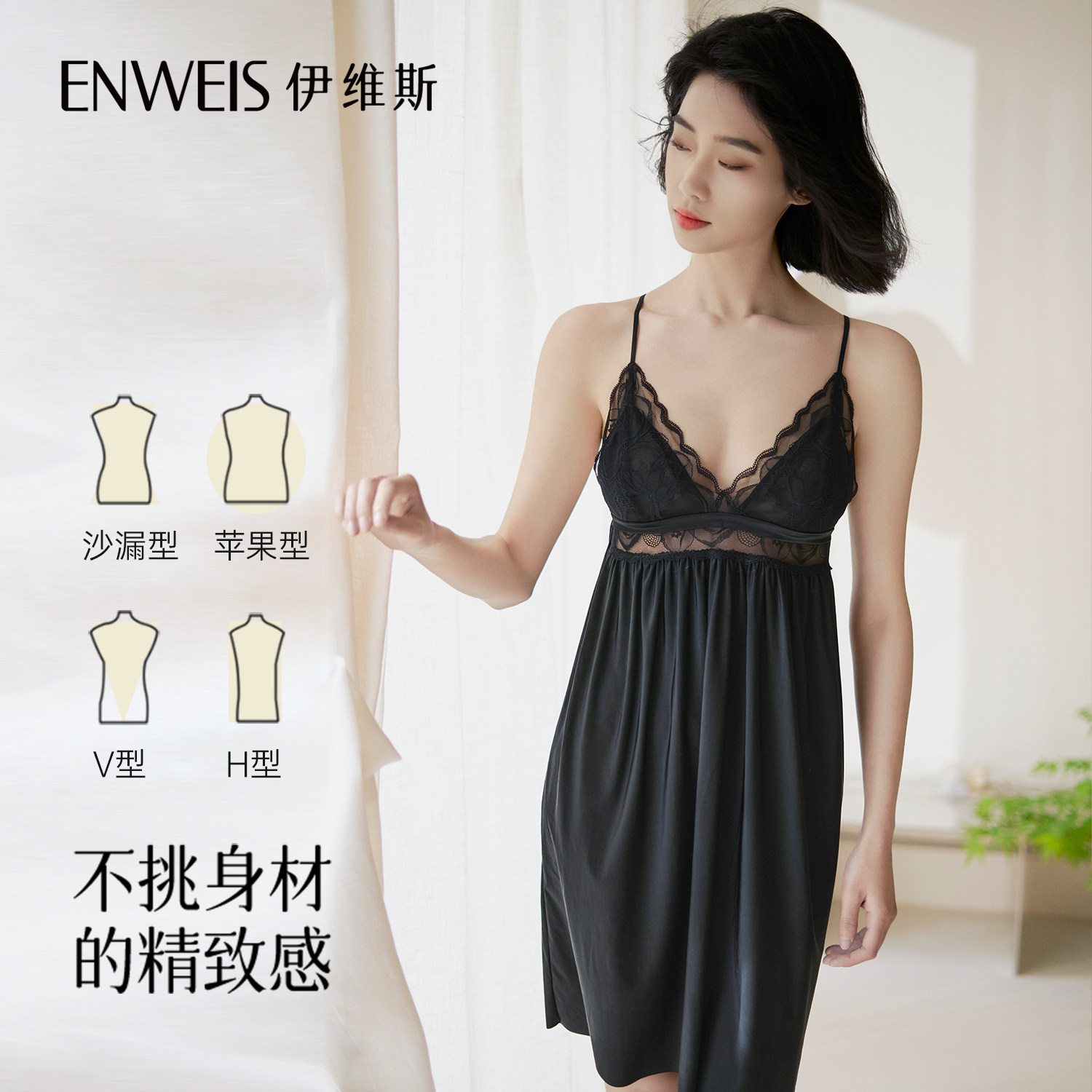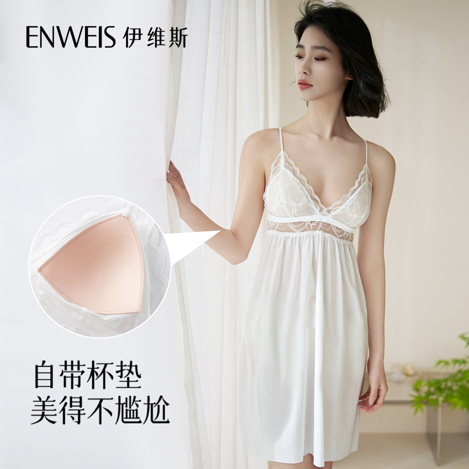 伊维斯花语睡裙 吊带睡裙舒适蕾丝带胸垫冰丝家居服秋季新款