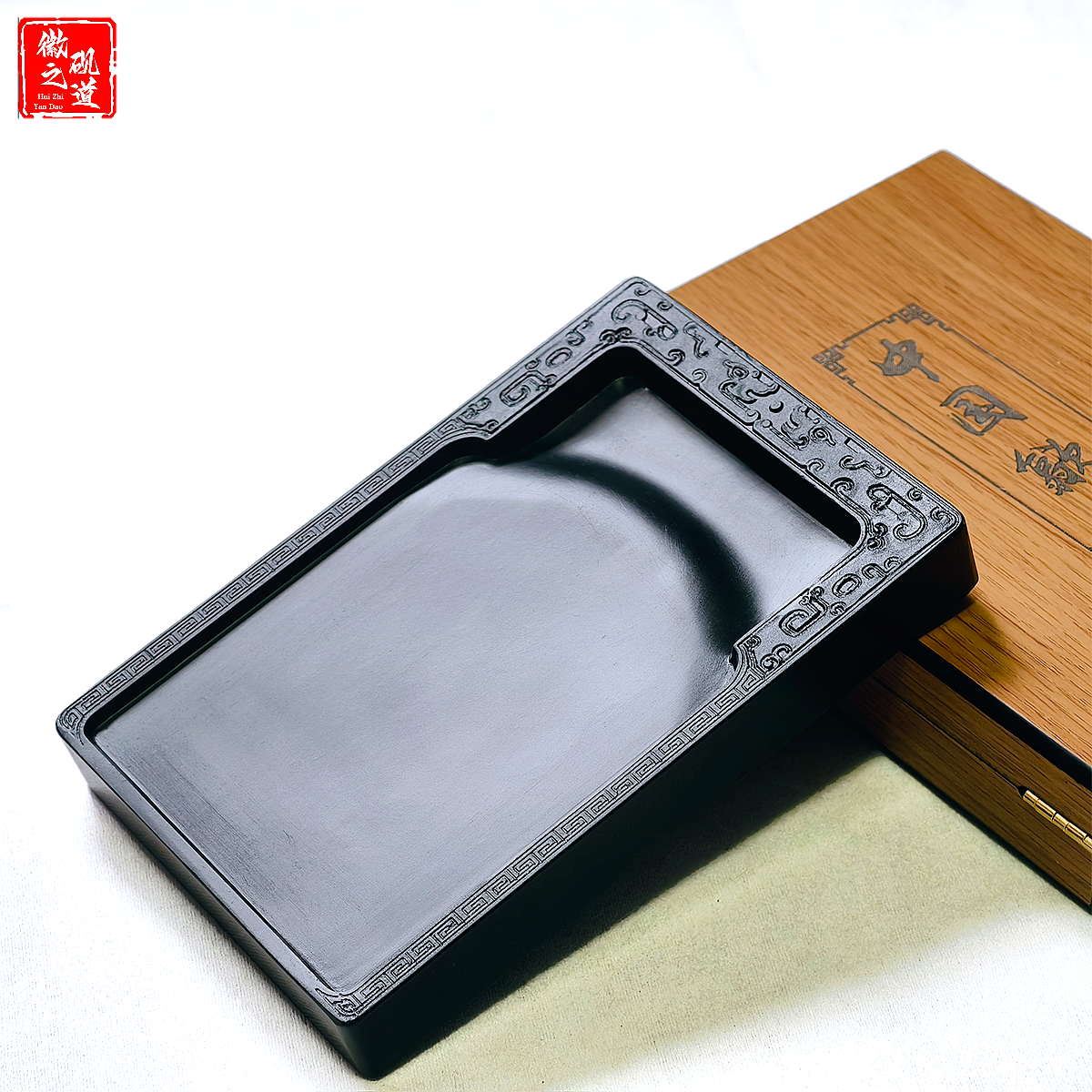 歙砚素砚天然原石砚台书法专用多功能墨盒墨砚水碟原石天然石