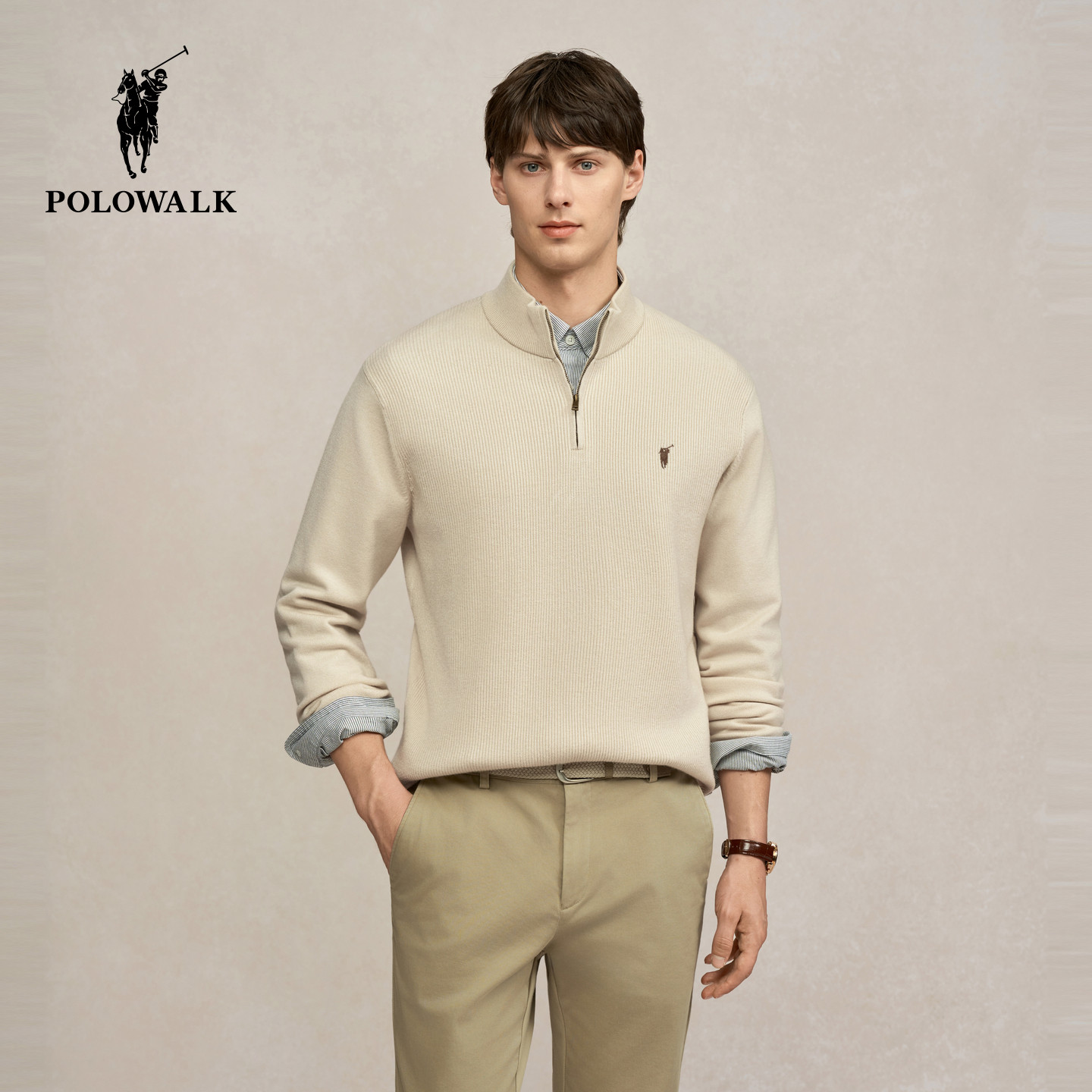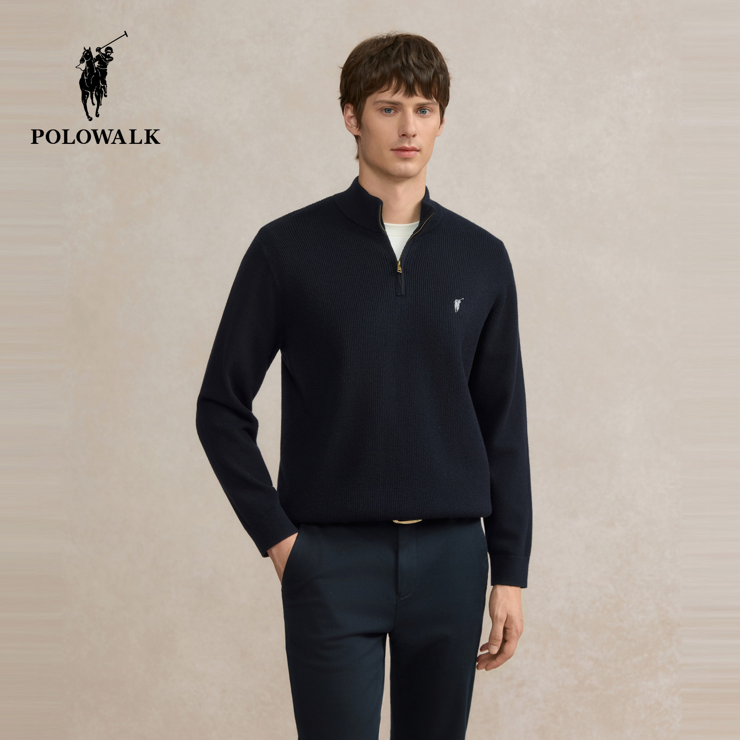 POLOWALK男装针织衫2025秋季新品男式商务休闲立领百搭男式上衣