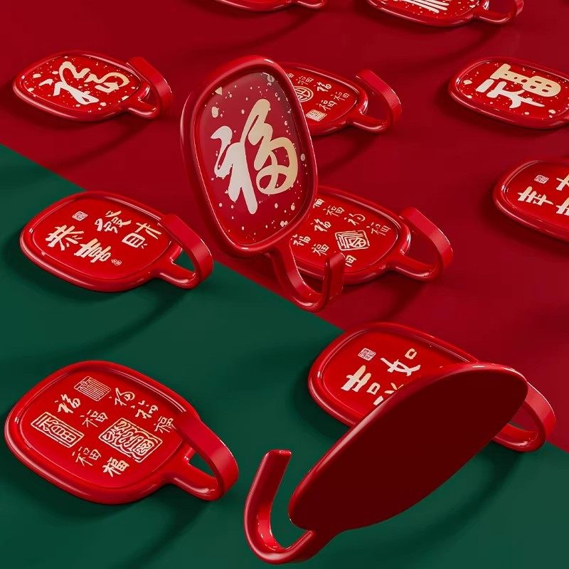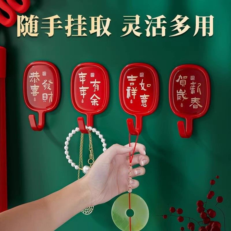 中国红色福字挂钩新年粘钩打孔无痕结婚钩子粘胶喜庆墙上宿舍强力