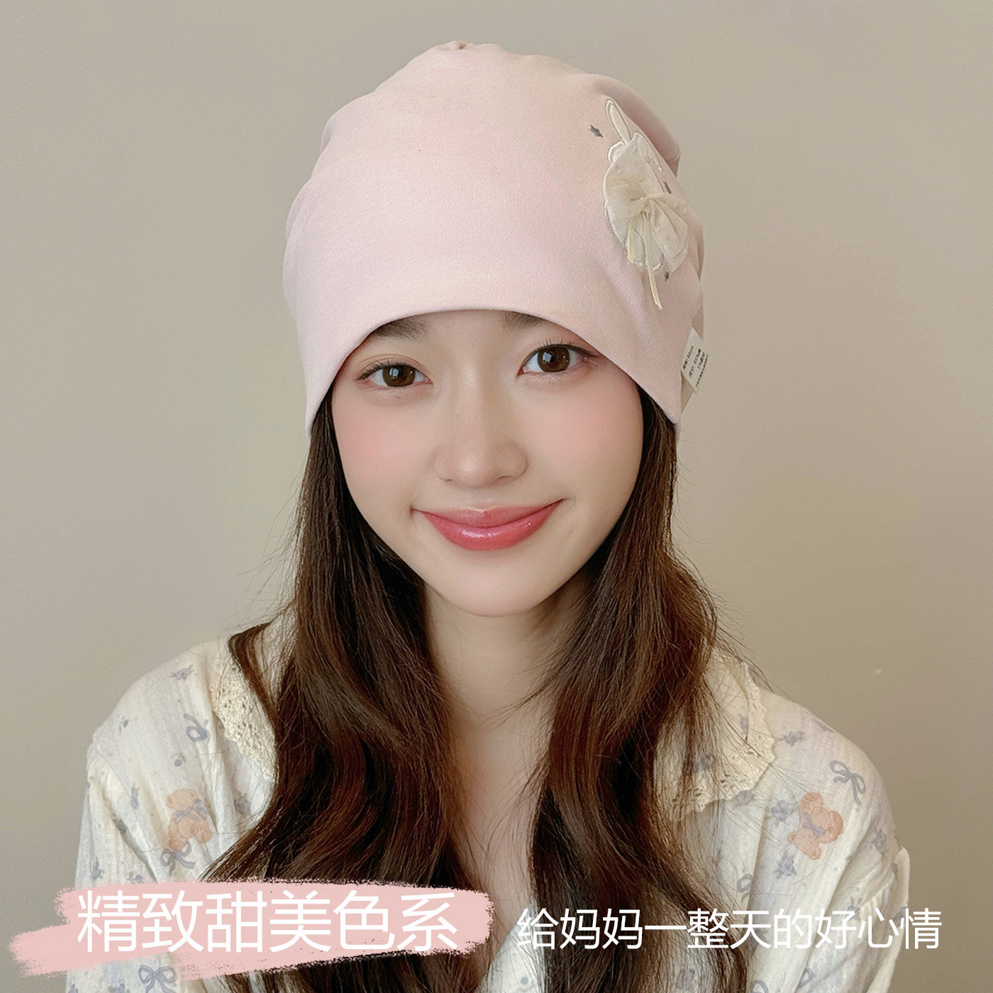 婧麒月子帽秋冬纯棉产后护额头产妇帽坐月子产后防风保暖头巾帽子