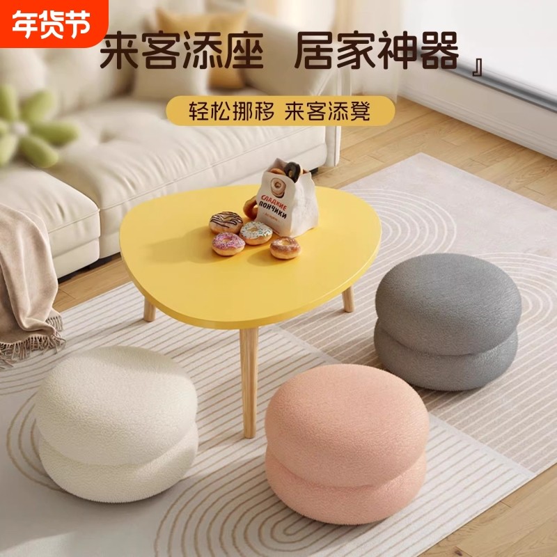 奶油风客厅小凳子家用圆凳沙发凳矮凳换鞋凳子小板凳坐墩茶几轻奢