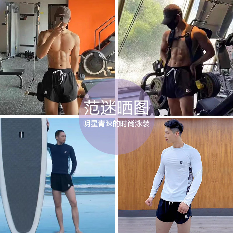 男士泳衣套装新款速干双层泳裤长袖防晒沙滩上衣成人全套游泳装备