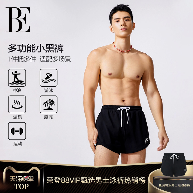 BE范德安泳裤男士成人套装水陆两穿游泳装备大码双层防尴尬温泉
