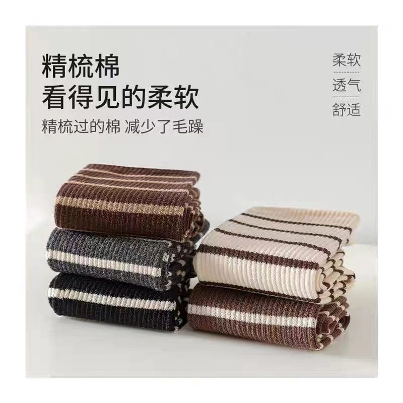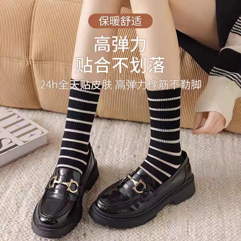 条纹袜子女春秋中筒袜潮流长袜百搭纯棉防臭长筒袜吸汗针织双针